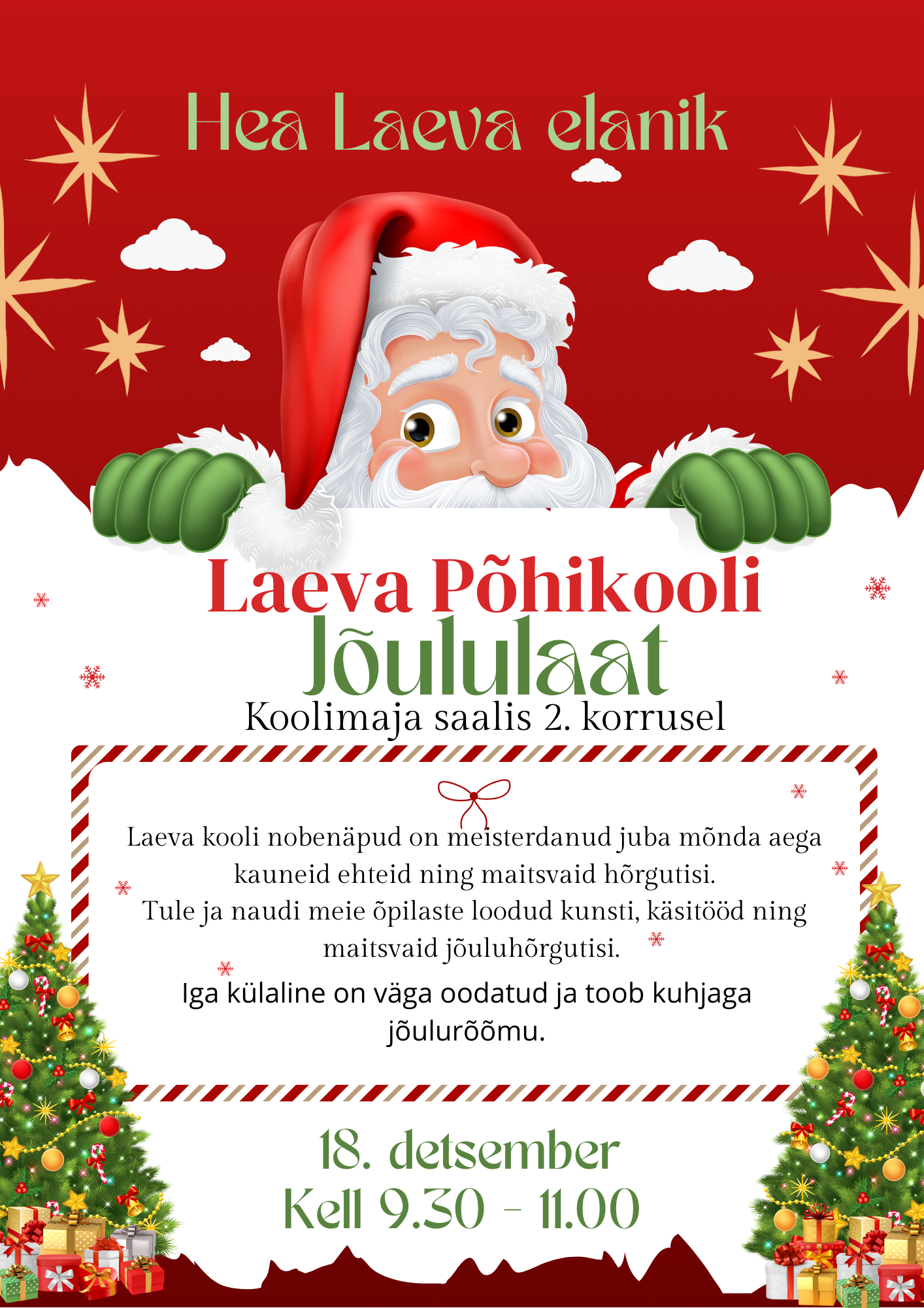 Jõululaat toimub koolimaja saalis 2. korrusel 18. detsembril kell 9.30-11.00