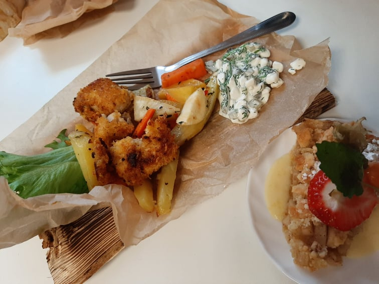 Nii kõik valmis saigi ja katsime ühiselt laua. Lauas vestlesime toidu valmistamisest ja kokk jagas nippe.