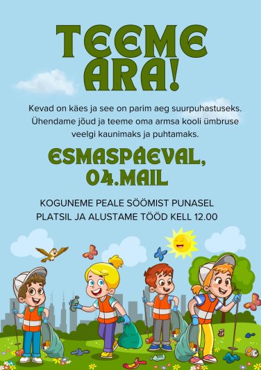 Kell 12 koguneme punasel väljakul ja alustame talgutega. Noorematel võib arvestada tund aega ja vanematel umbes kaks tundi talgutöödeks.