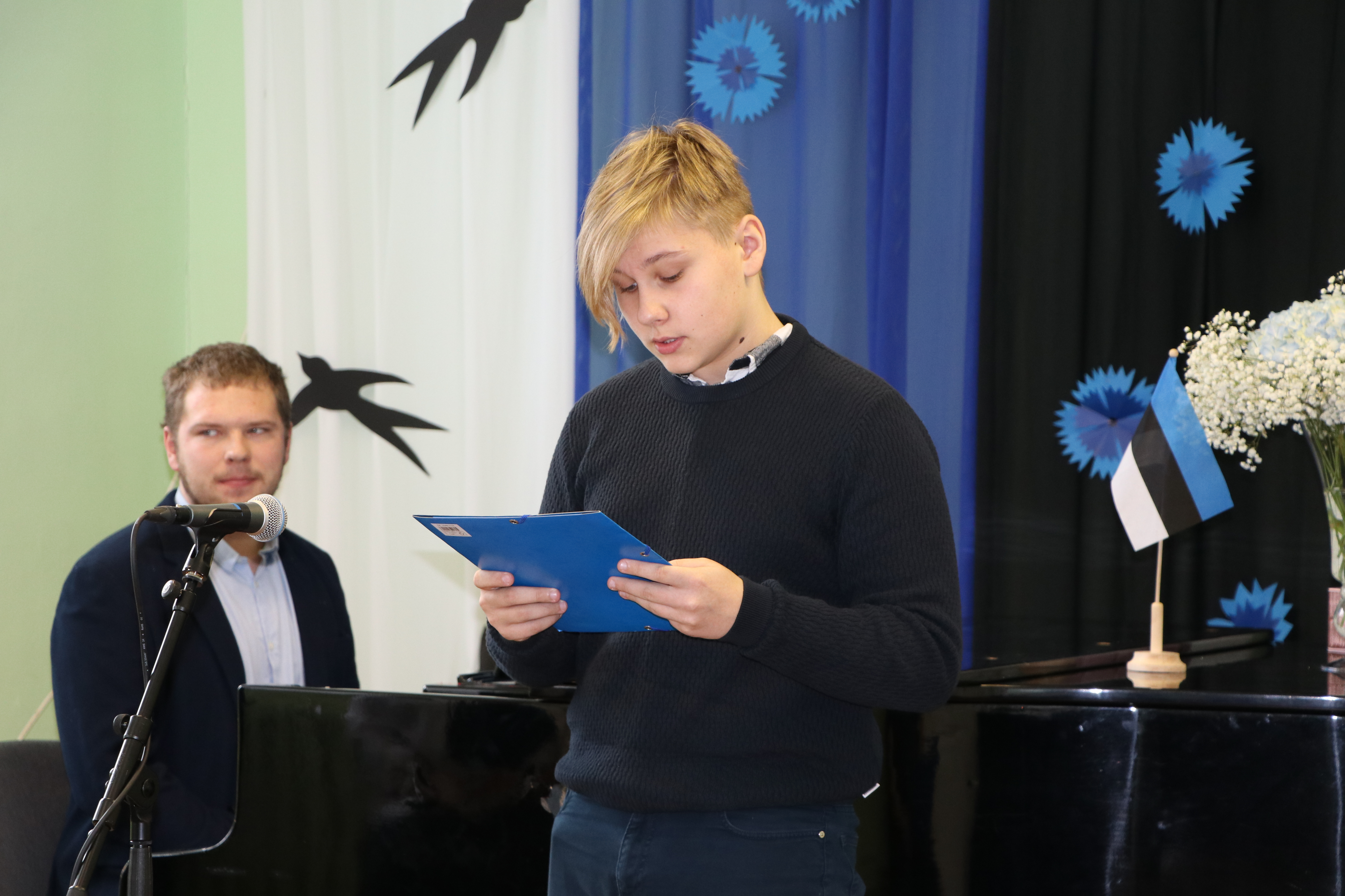 Laulsime hümni ja kooli laulu ning koolidirektor pidas pidupäevakõne. Aktusel lauldi veel ühislauluna Ülo Vinteri “Laul Põhjamaast”, mis oli varem kõigil õpilastel muusikatundides selgeks õpitud. Omaloomingulisi kõnesid esitasid Caspar Orion, Tony Kägo ja Joosep Hünnonen. 1.-4. klasis õpilaste esituses kuuldi luulekava nimega"Eestima lapsed".