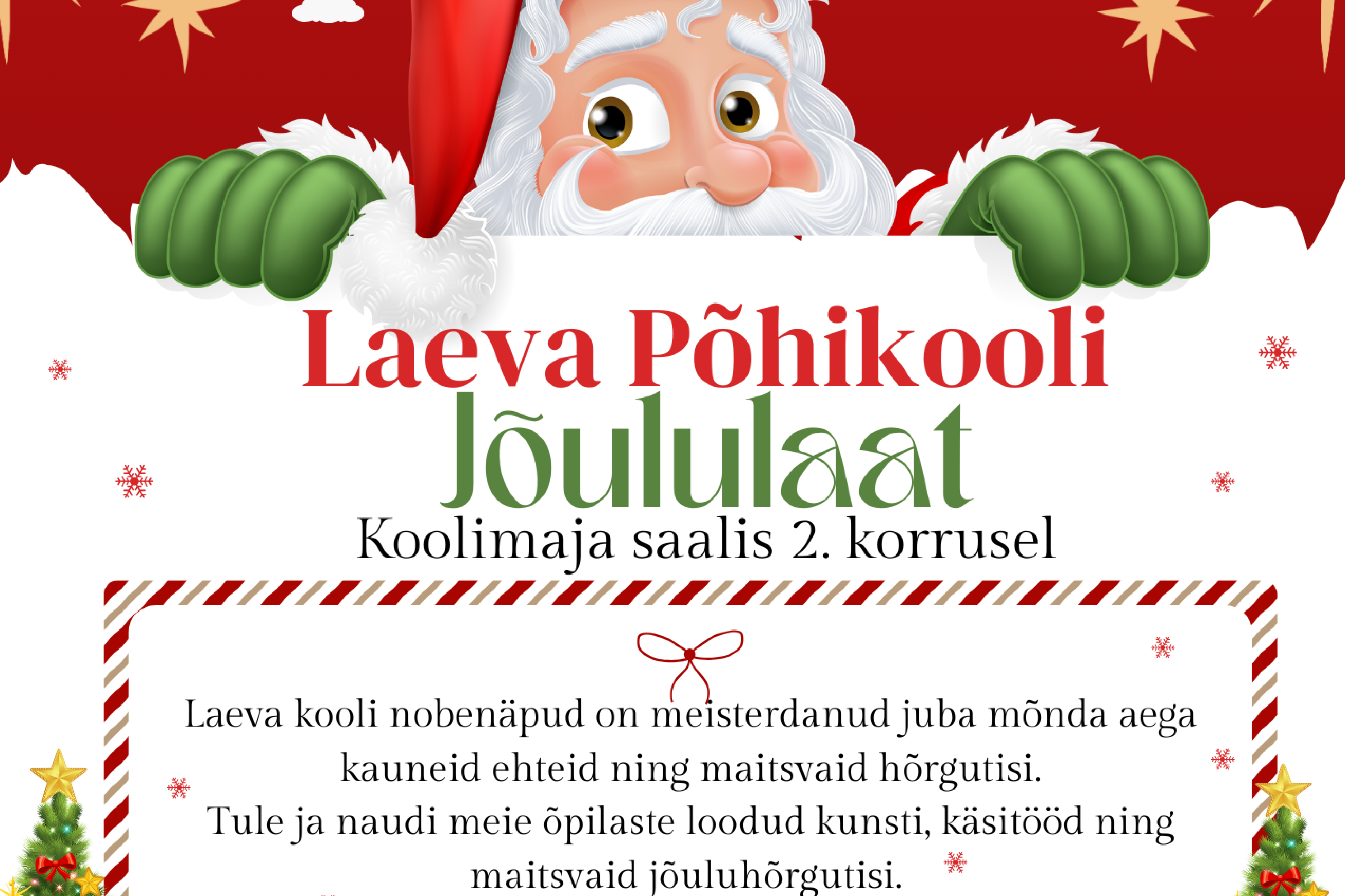 Jõululaat toimub koolimaja saalis 2. korrusel 18. detsembril kell 9.30-11.00