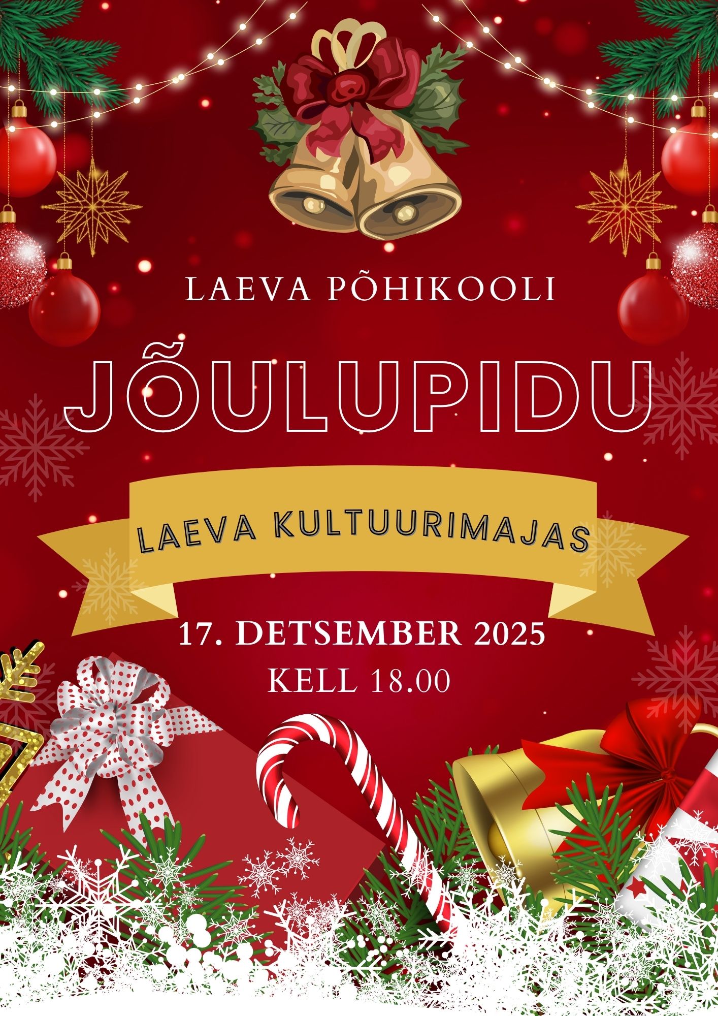 Laeva Põhikooli jõulupidu toimub 17. detsember algusega kell 18 Laeva Kultuurimajas. Ava foto Viimati muudetud 04.12.2025.